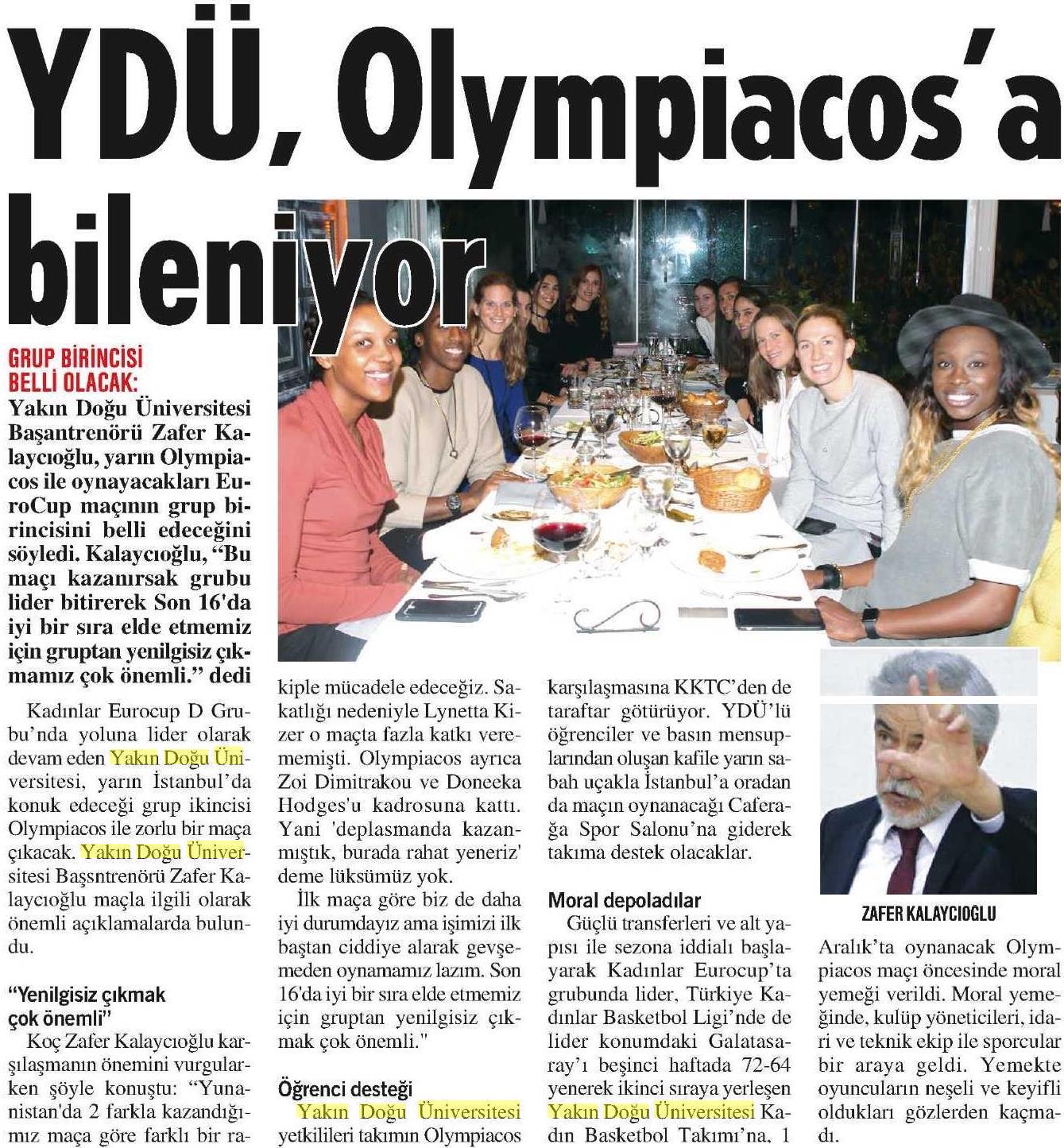 YDÜ, Olympiacos’a Bileniyor-Havadis Gazetesi (Kıbrıs)