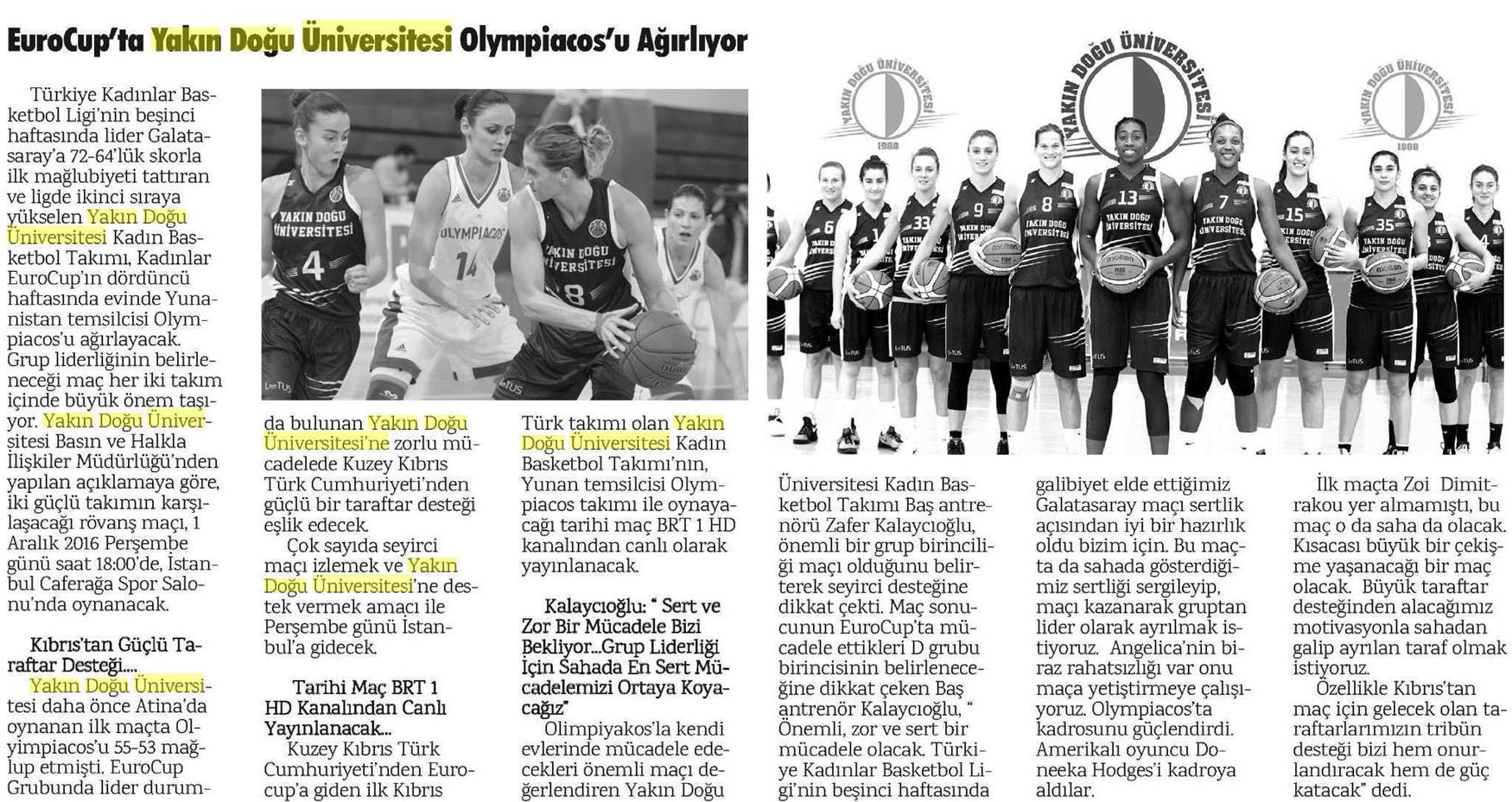 EuroCup’ta Yakın Doğu Üniversitesi Olympiacos’u Ağırlıyor-Hakikat Kıbrıs