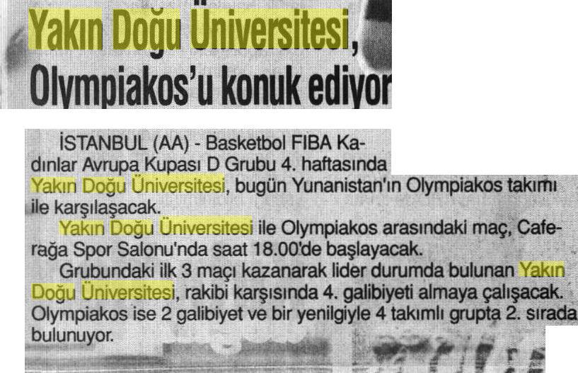 Yakın Doğu, Olympiacos’u Ağırlıyor-Yeni Çağrı