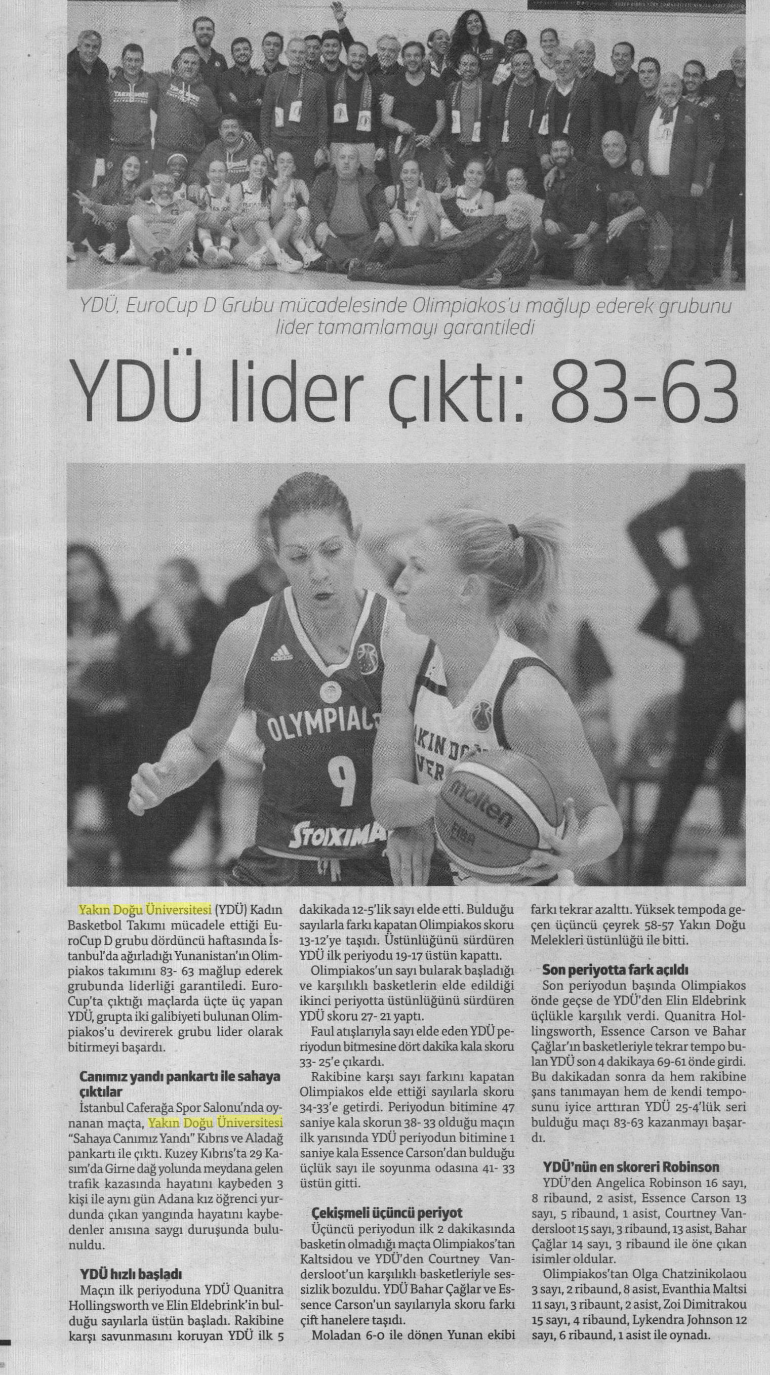 YDÜ Lider Çıktı: 83-63-Yeni Düzen