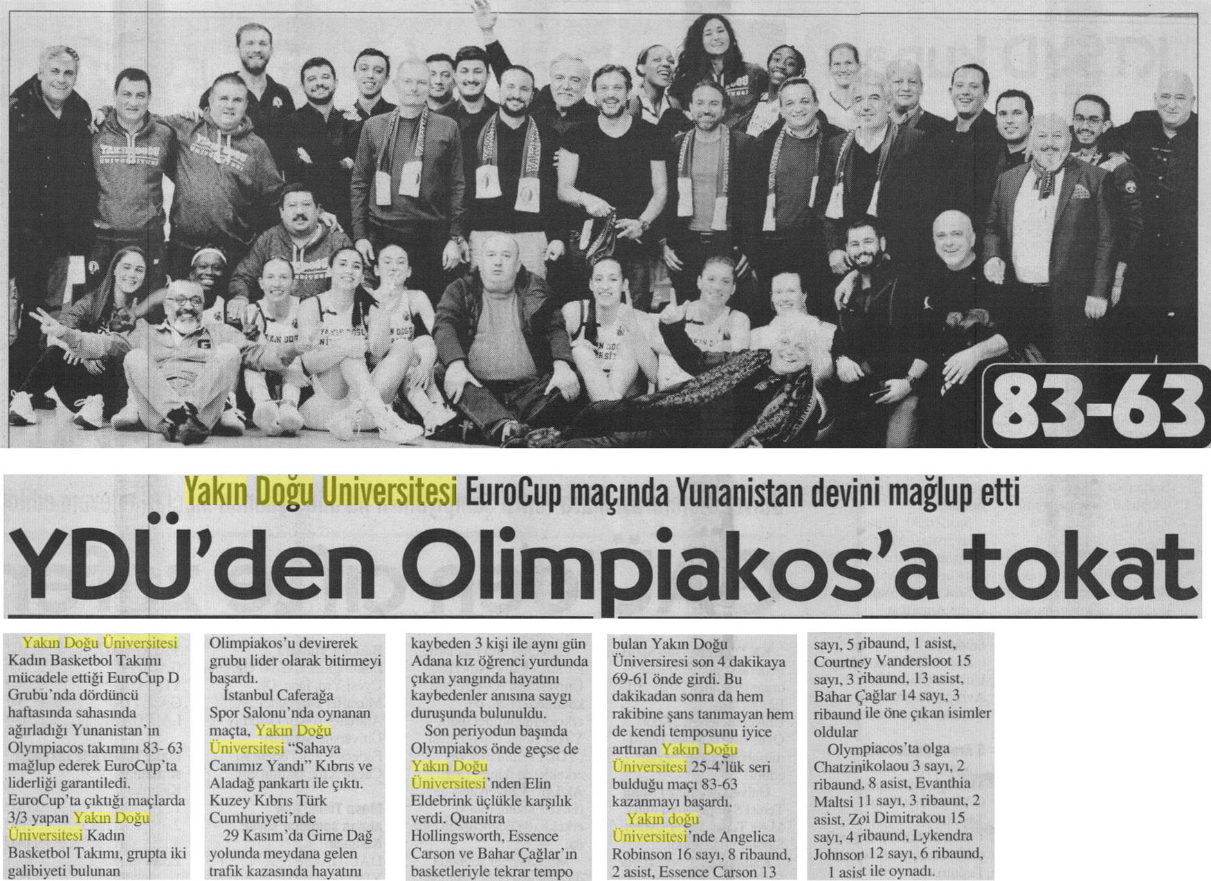 YDÜ’den Olympiacos’a Tokat-Diyalog Gazetesi