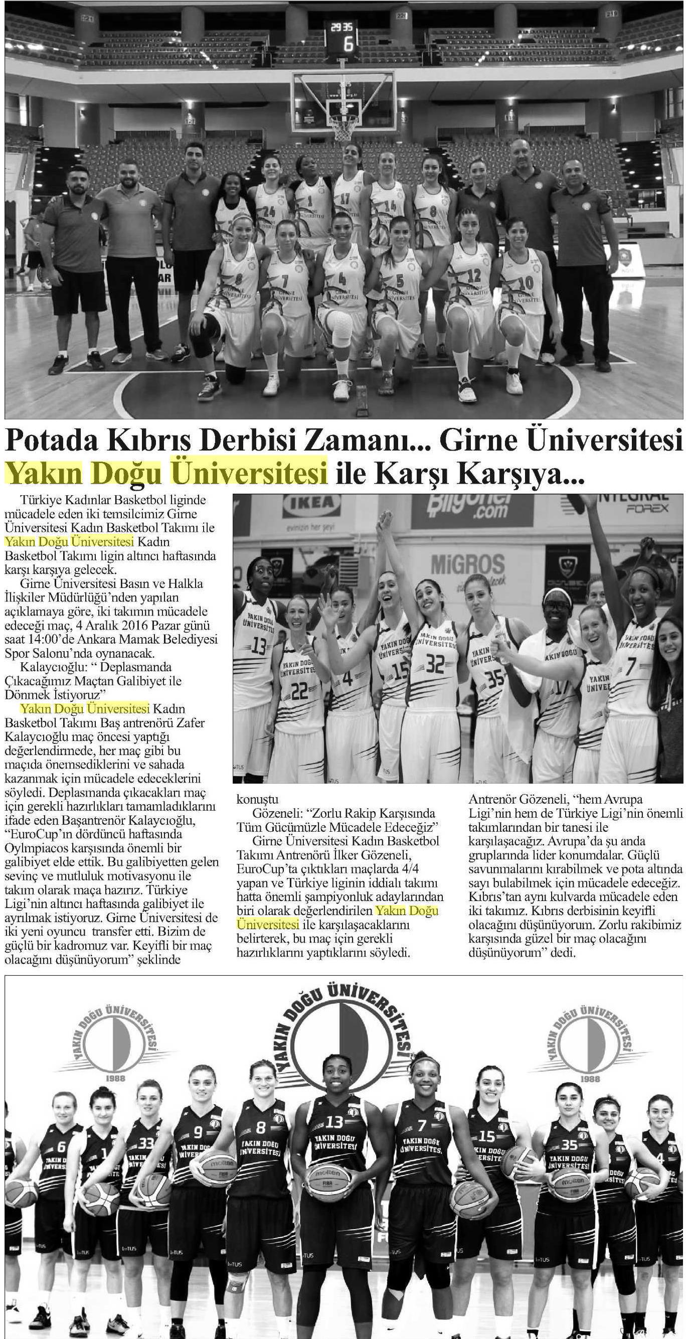 Potada Kıbrıs Derbisi Zamanı… Girne Üniversitesi ile Yakın Doğu Üniversitesi Karşı Karşıya…-Güneş (Kıbrıs)