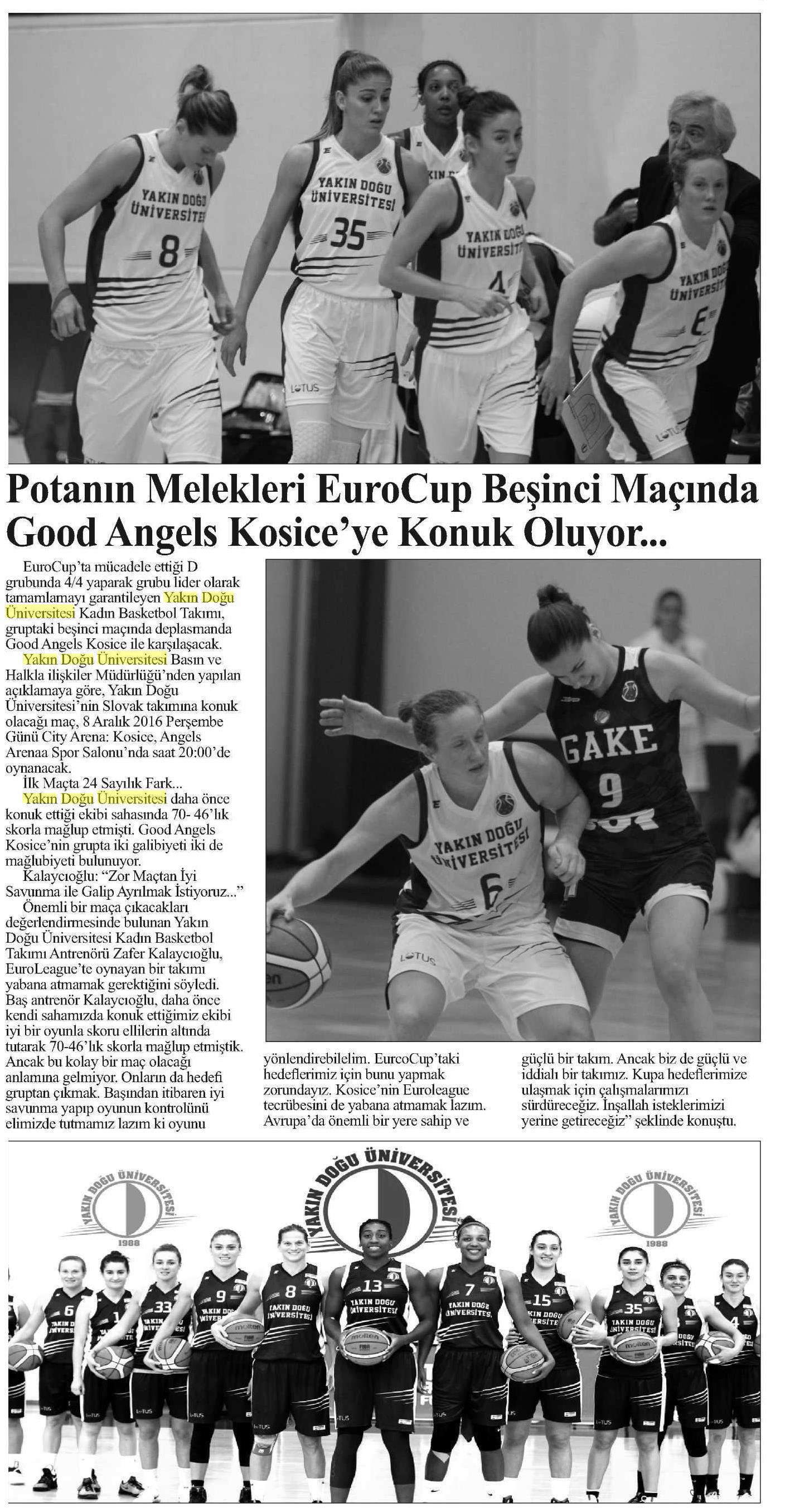 Potanın Melekleri Eurocup Beşinci Maçında Good Angels Kosice’ye Konuk Oluyor-Güneş (Kıbrıs)