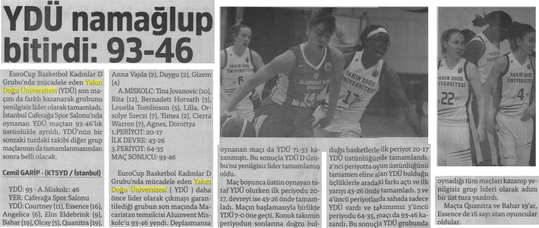 YDÜ Namağlup Bitirdi: 93-46 -Yeni Düzen