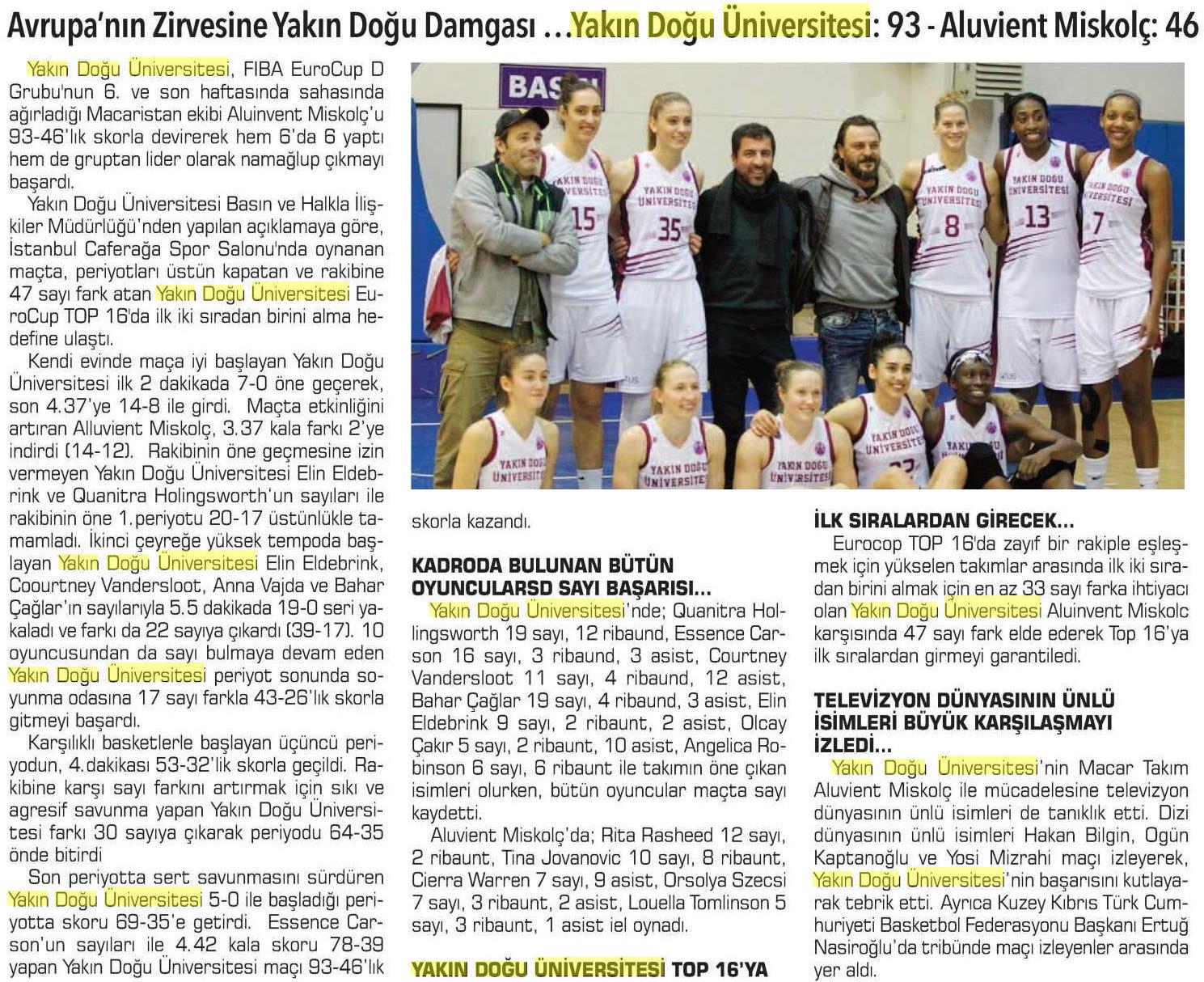 Avrupa’nın Zirvesine Yakın Doğu Damgası… Yakın Doğu Üniversitesi: 93 – Aluinvient Miskolc: 46 -Detay Kıbrıs