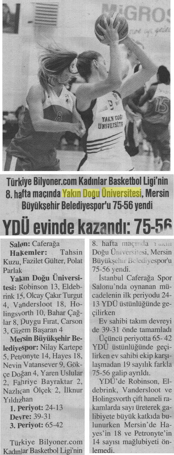YDÜ Evinde Kazandı: 75-56 -Havadis Gazetesi (Kıbrıs)