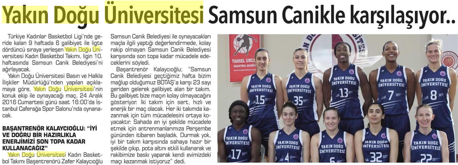 Yakın Doğu Üniversitesi Samsun Canikle Karşılaşıyor-Detay Kıbrıs