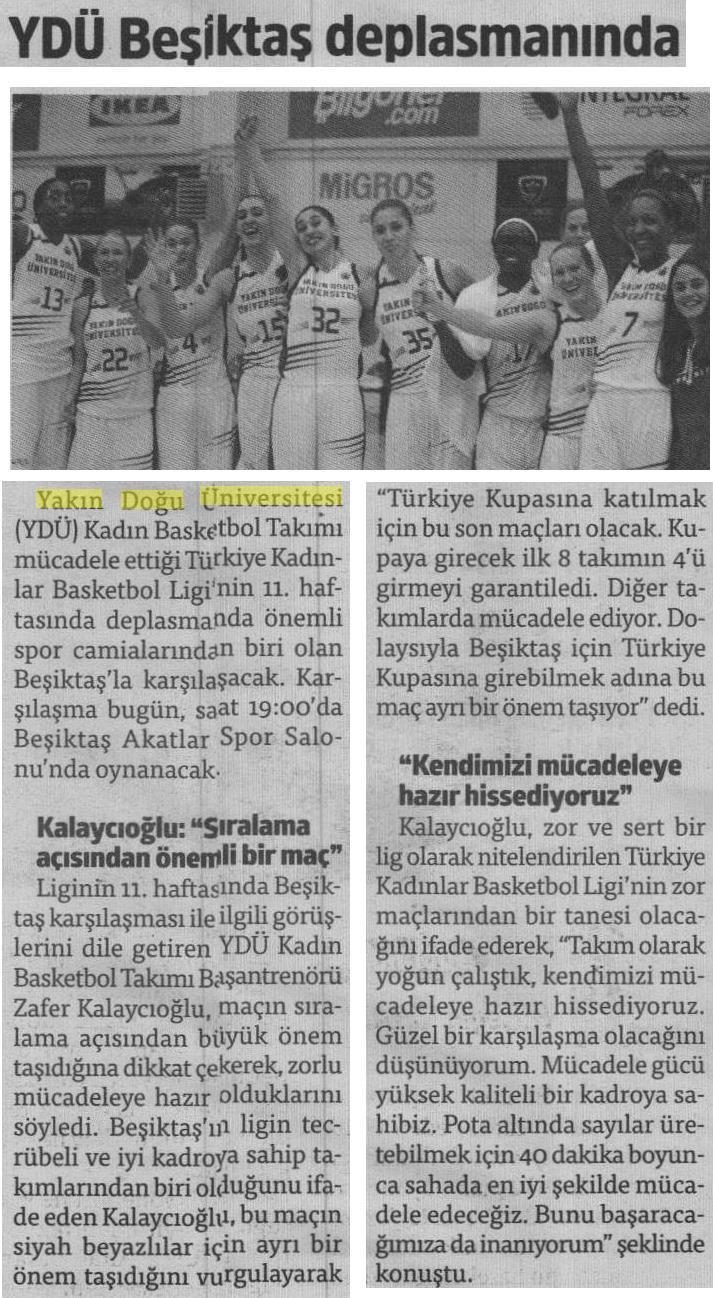 YDÜ Beşiktaş Deplasmanında-Yeni Düzen