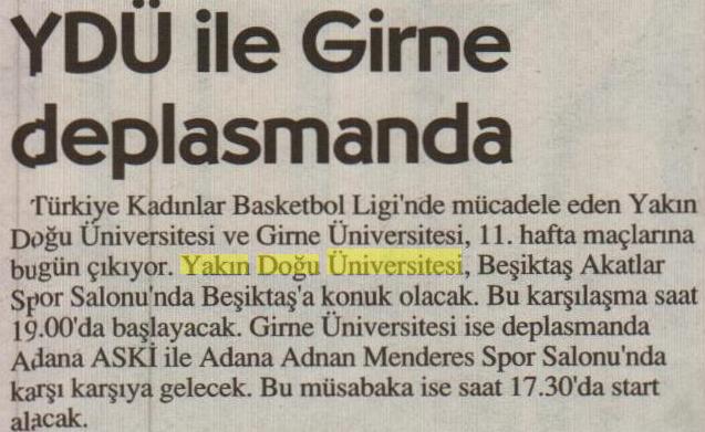 YDÜ İle Girne Deplasmanda-Kıbrıs Gazetesi