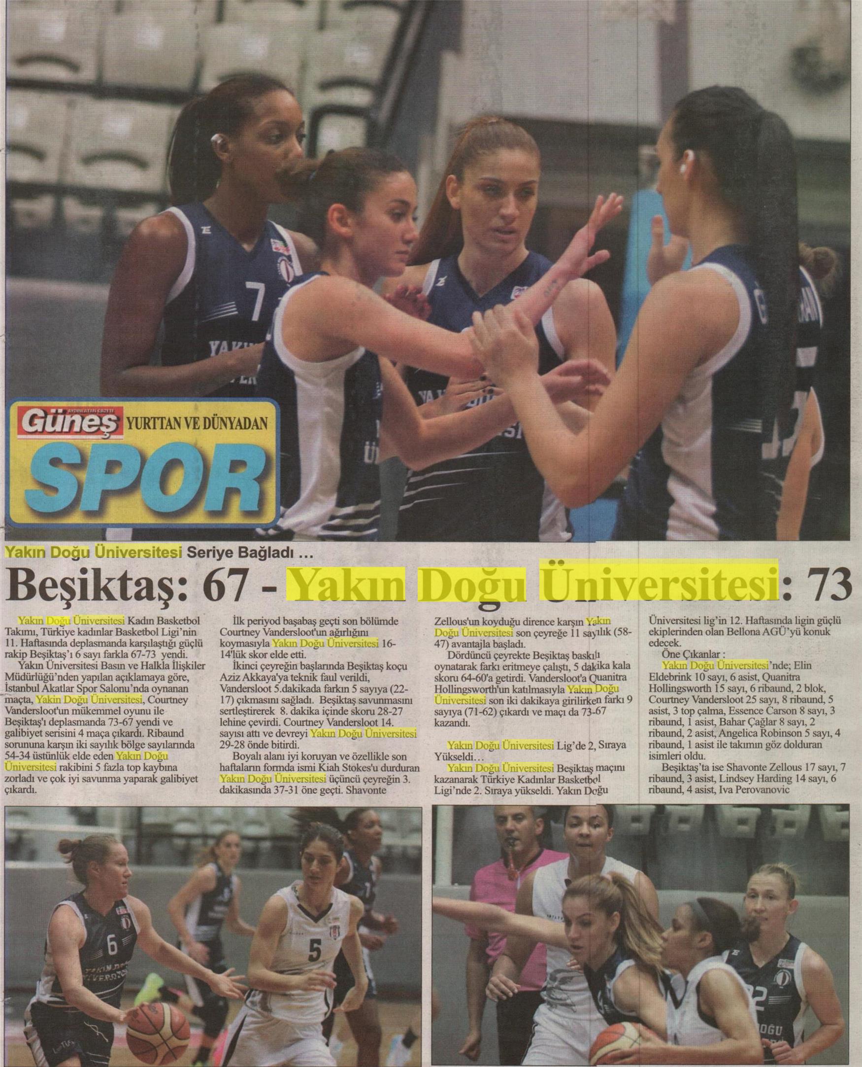 Beşiktaş: 67 – Yakın Doğu Üniversitesi: 73 -Güneş Kıbrıs