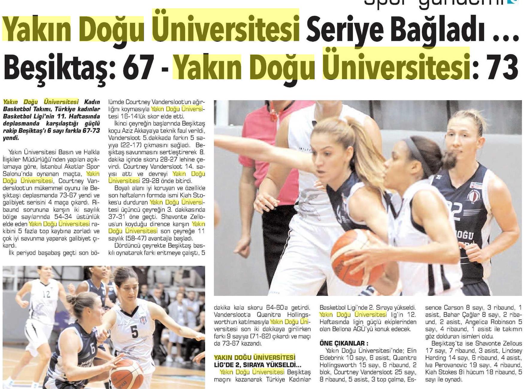 Yakın Doğu Üniversitesi Seriye Bağladı… Beşiktaş: 67 – Yakın Doğu Üniversitesi: 73 -Detay Kıbrıs