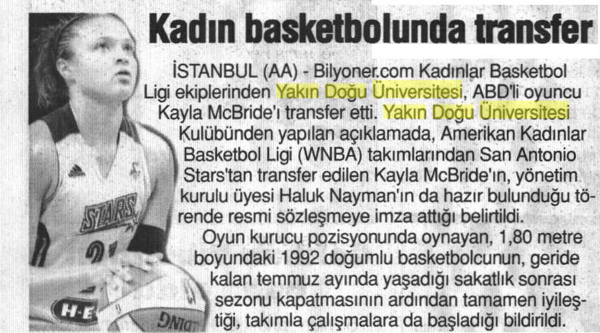 Kadın Basketbolunda Transfer-Yeni Çağrı
