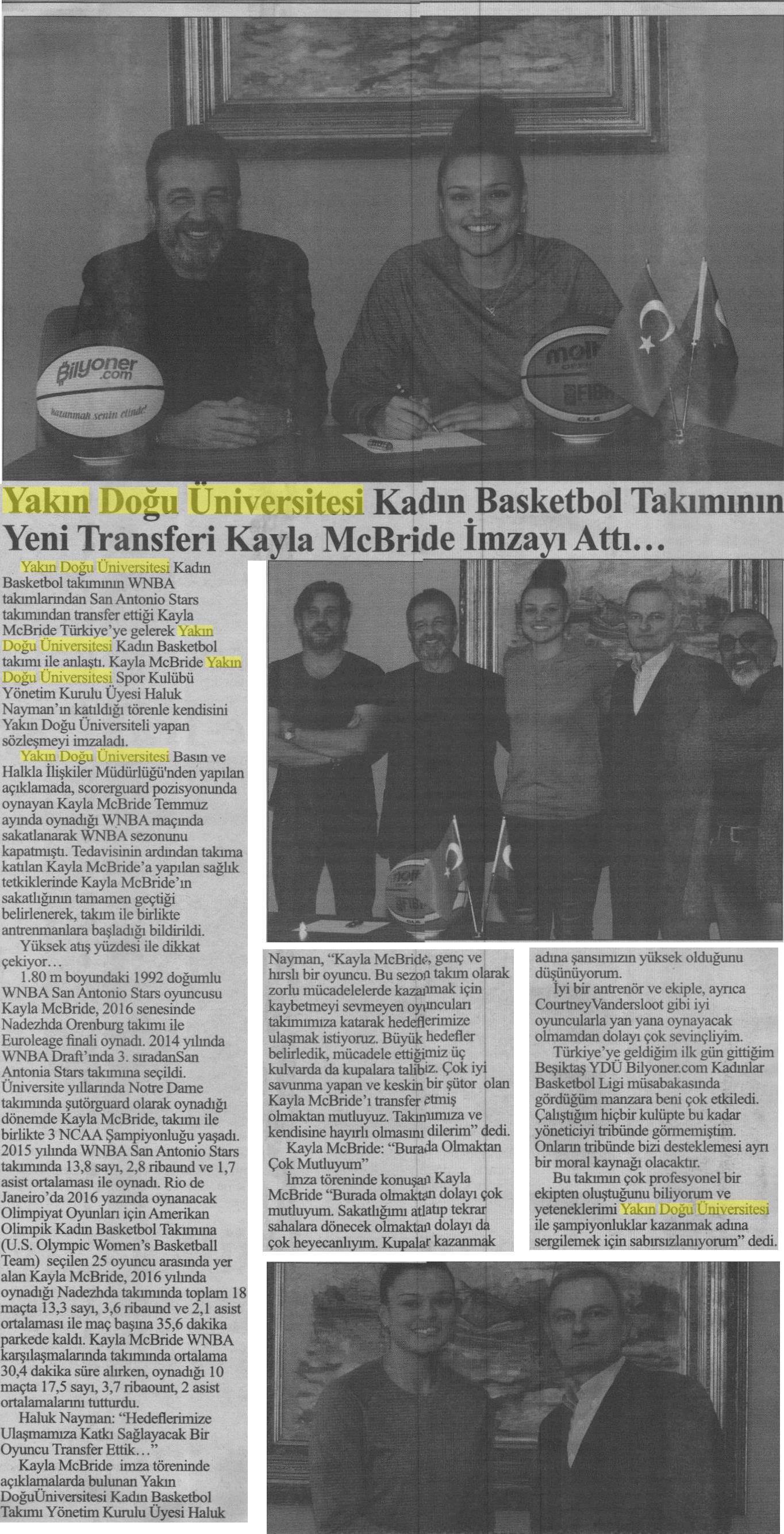 Yakın Doğu Üniversitesi Kadın Basketbol Takımının Yeni Transferi Kayla McBride İmzayı Attı-Güneş (Kıbrıs)