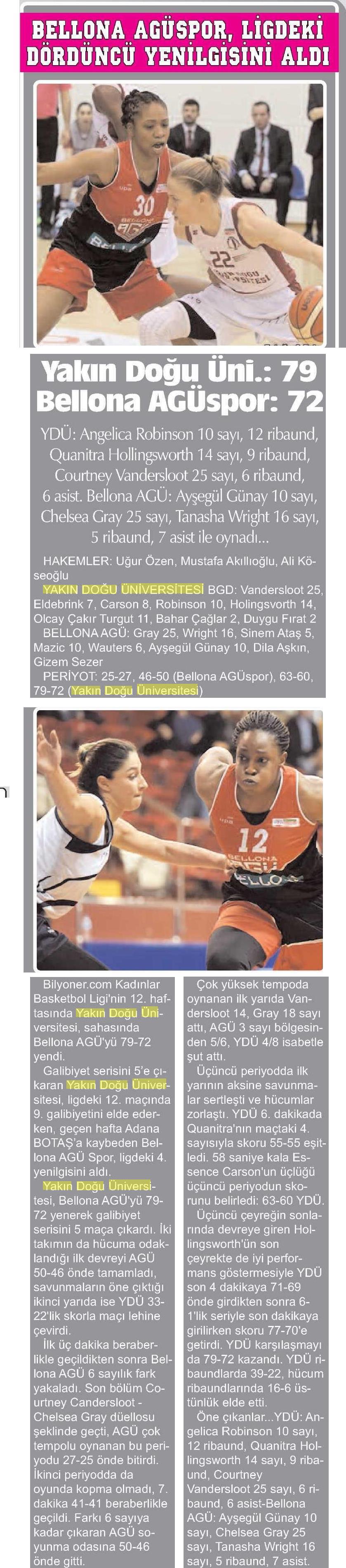 Yakın Doğu Üni.: 79-Bellona AGÜSpor: 72-Kayseri Yeni Haber