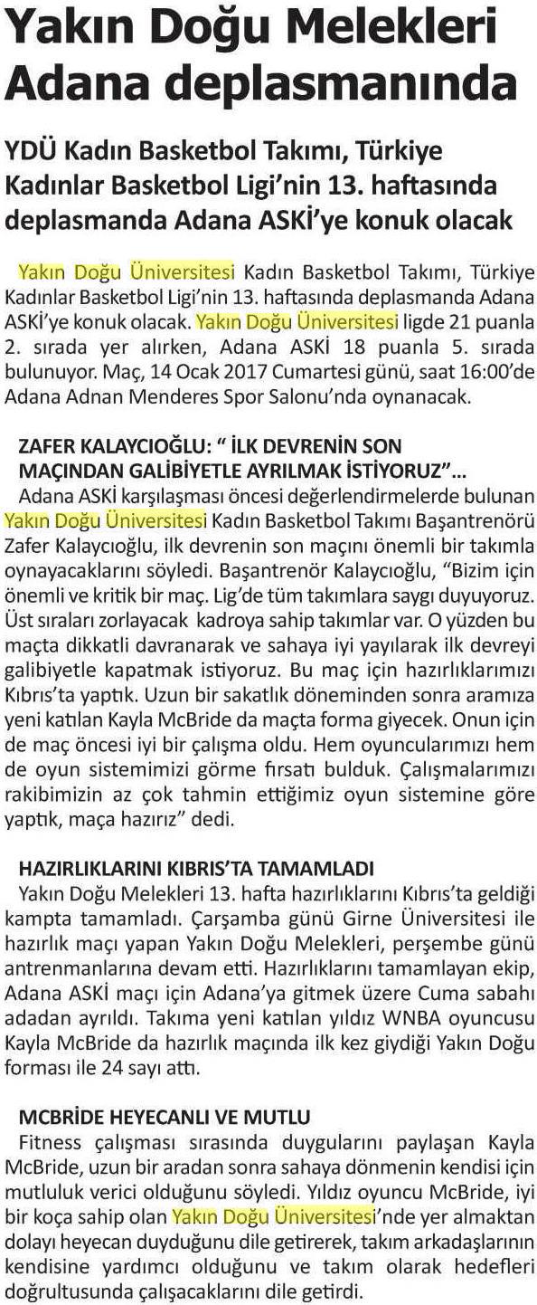 Yakın Doğu Melekleri Adana Deplasmanında-Halkın Sesi (Kıbrıs)