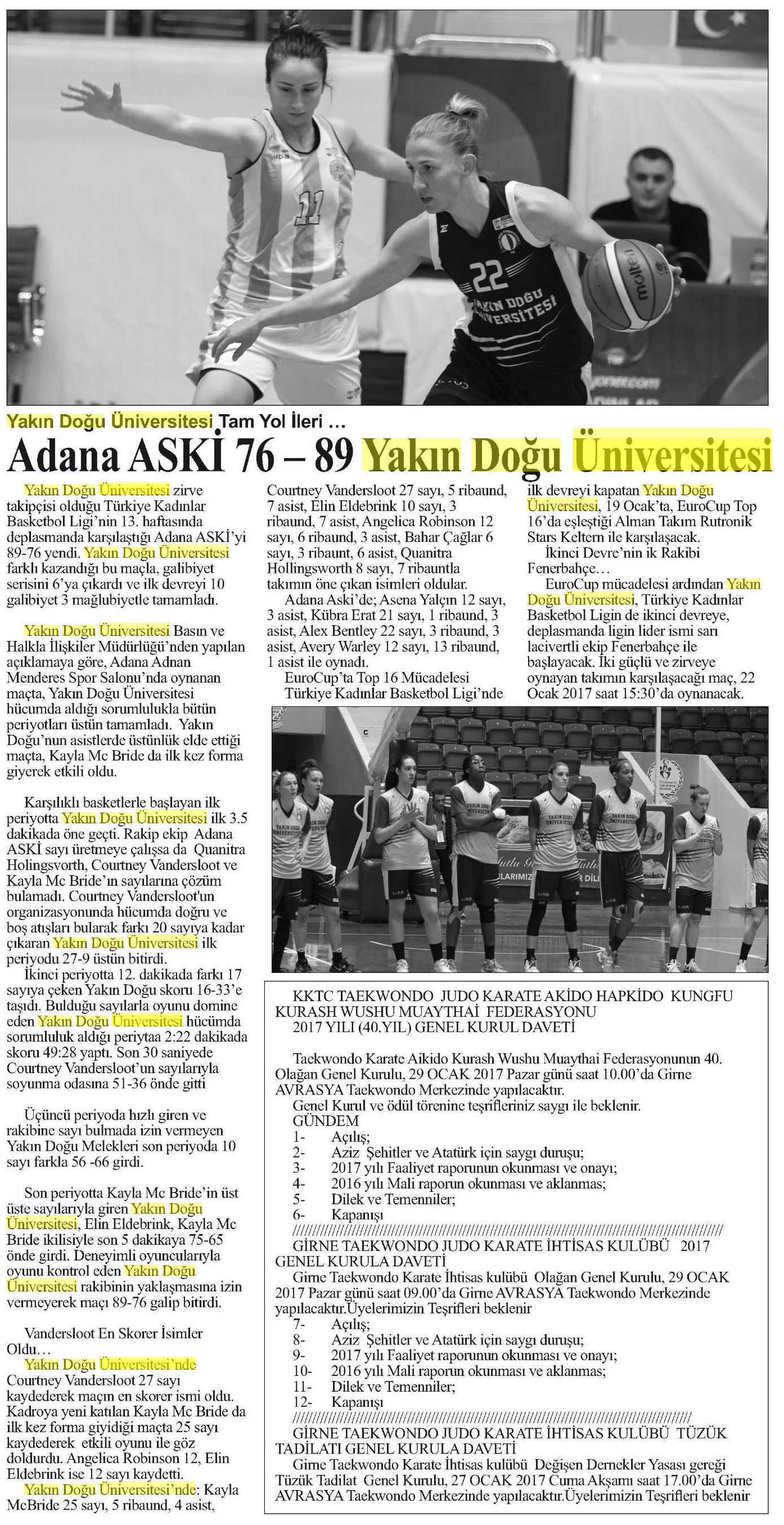Adana ASKİ 76 – 89 Yakın Doğu Üniversitesi-Güneş (Kıbrıs)