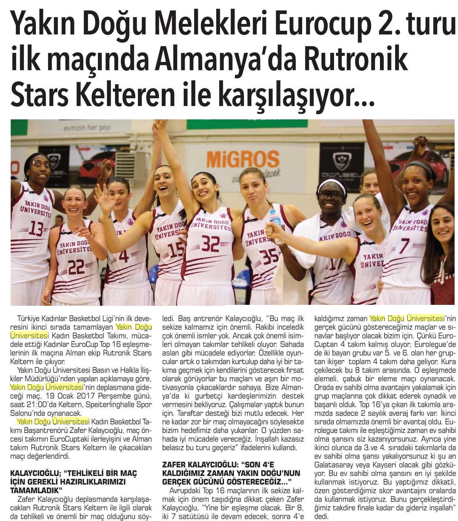 Yakın Doğu Melekleri EuroCup 2. Turu İlk Maçında Almanya Rutronik Stars Keltern İle Karşılaşıyor-Detay Kıbrıs