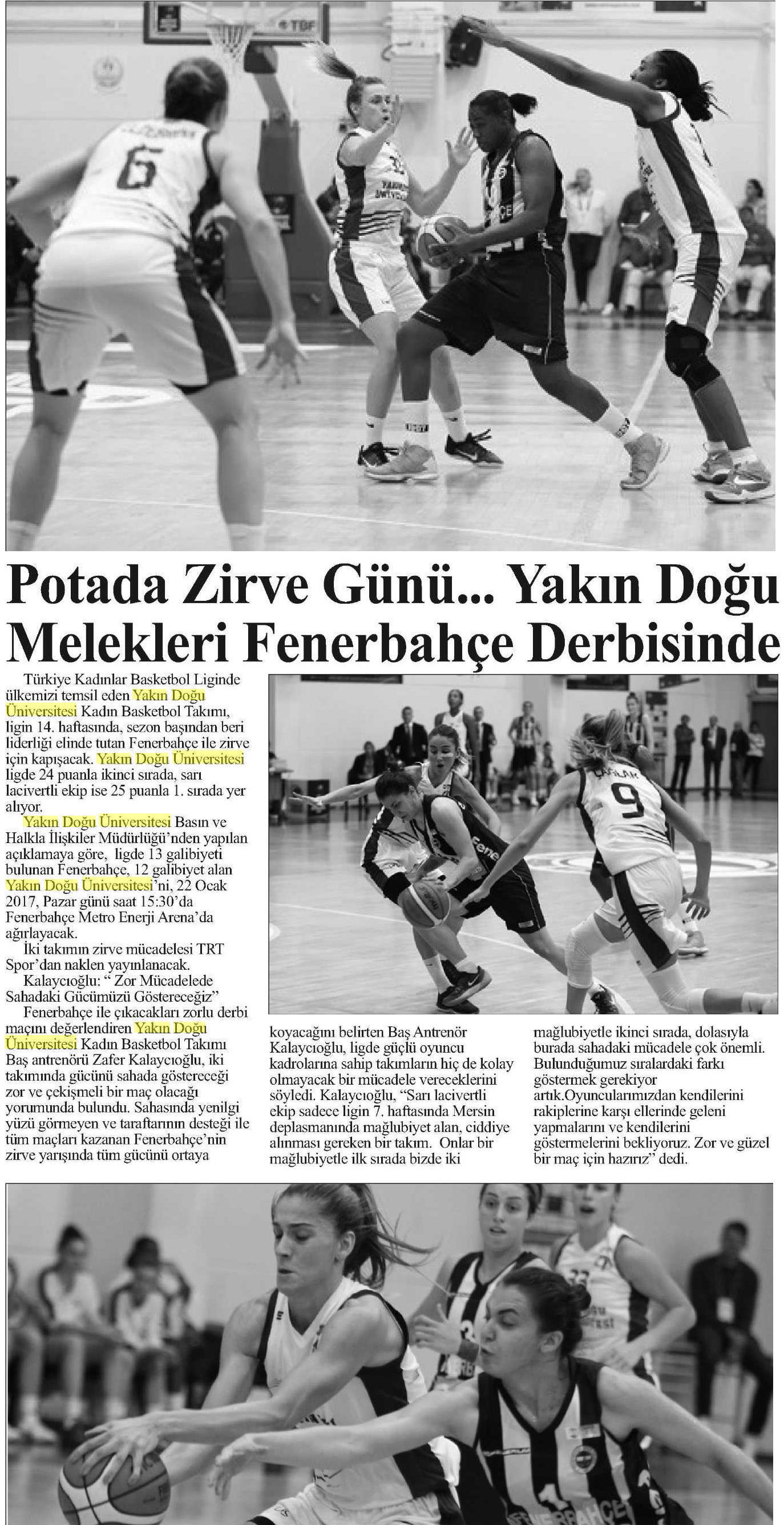 Potada Zirve Günü… Yakın Doğu Melekleri Fenerbahçe Derbisinde-Güneş (Kıbrıs)