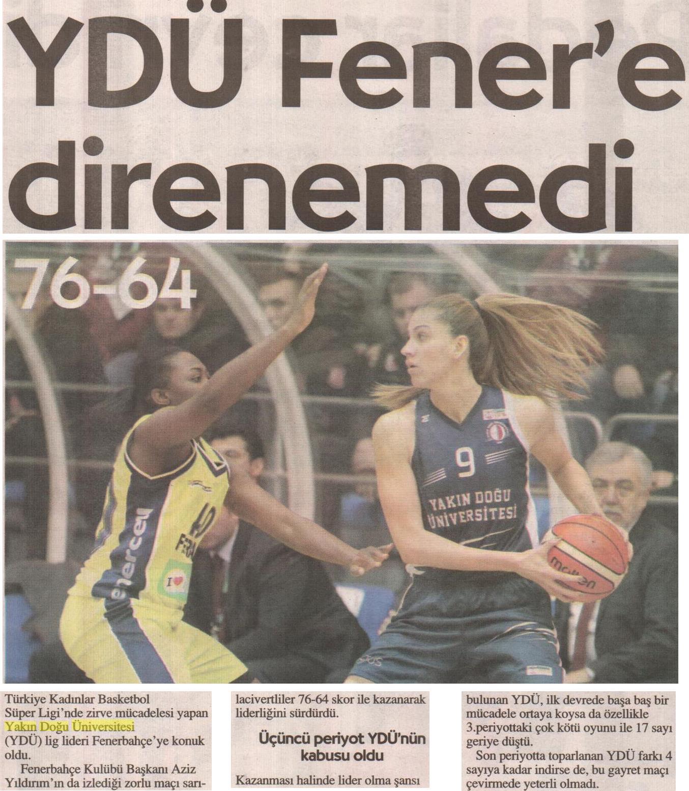 YDÜ Fener’e Direnemedi-Kıbrıs Gazetesi