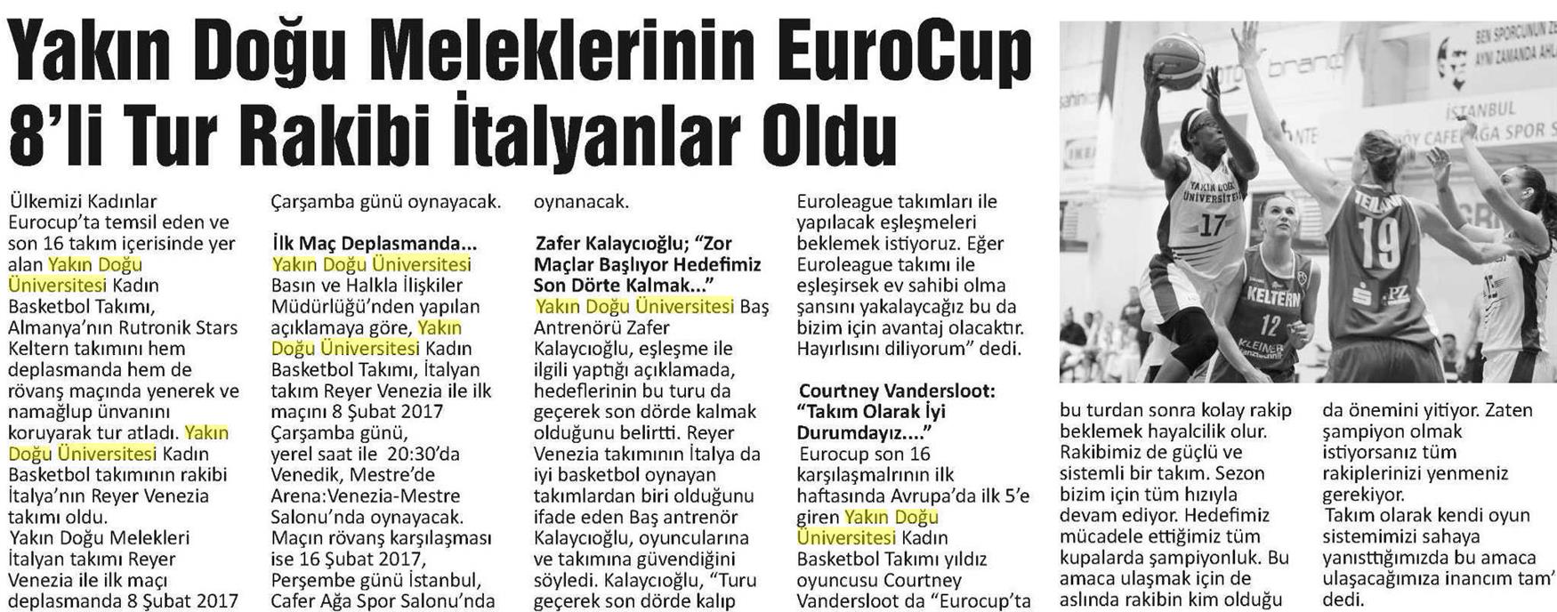 YDÜ Meleklerinin EuroCup 8’li Tur Rakibi İtalyanlar Oldu-Hakikat Kıbrıs