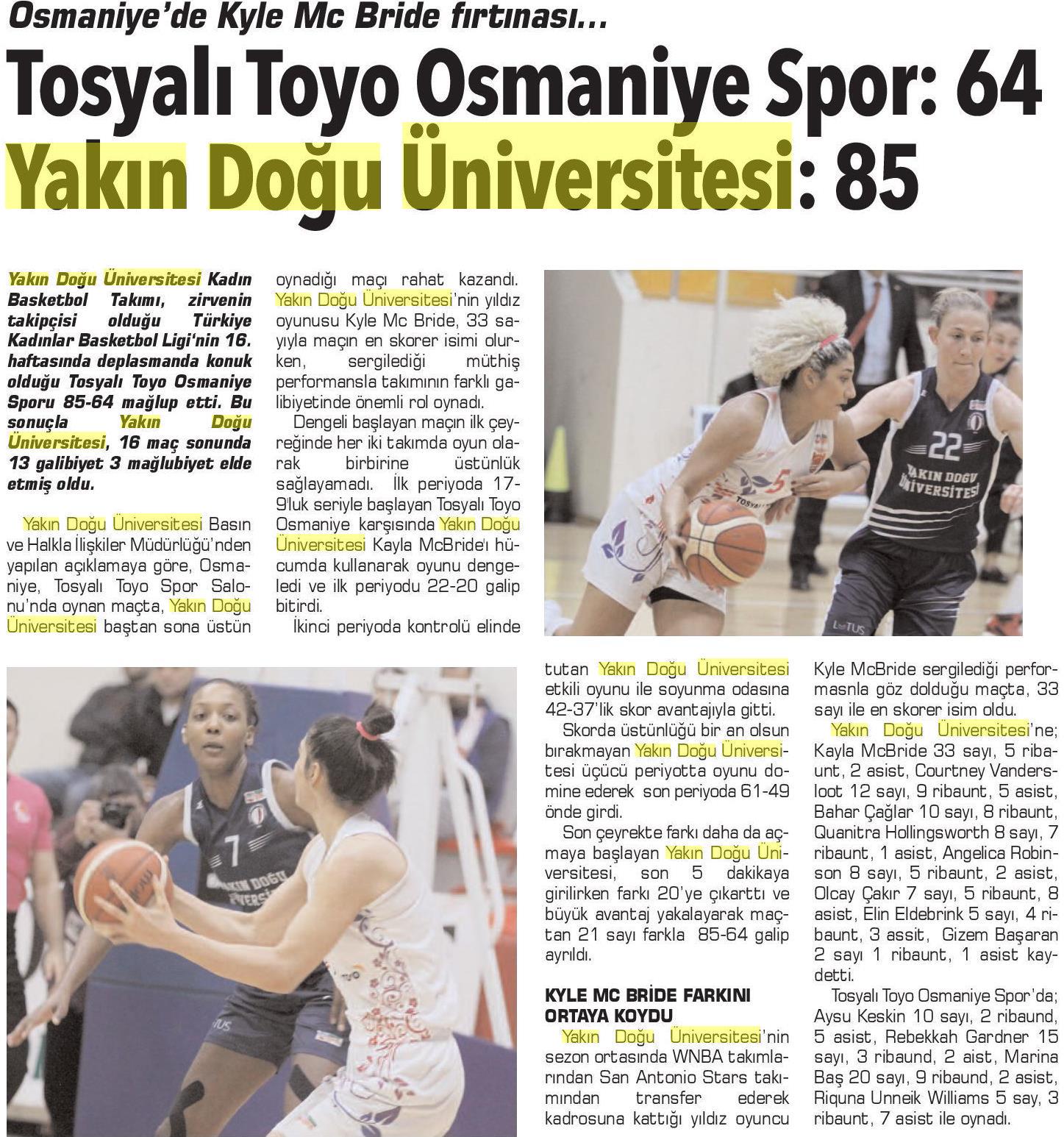 Tosyalı Toyo Osmaniye Spor: 64 – Yakın Doğu Üniversitesi: 85 -Detay Kıbrıs