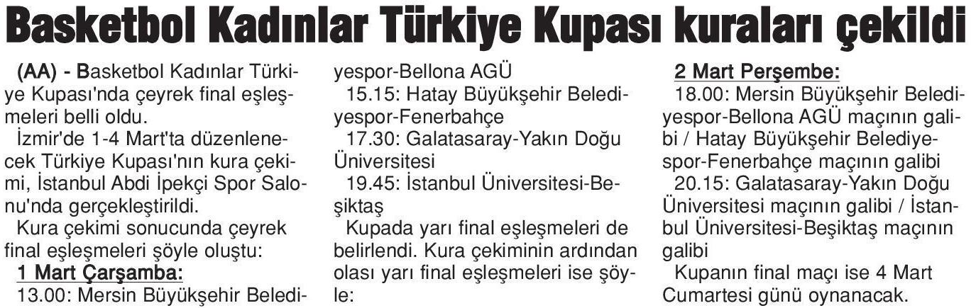 Basketbol Kadınlar Türkiye Kupası Kuraları Çekildi-Son Saat