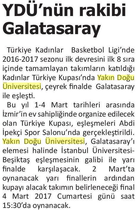 YDÜ’nün Rakibi Galatasaray-Halkın Sesi (Kıbrıs)
