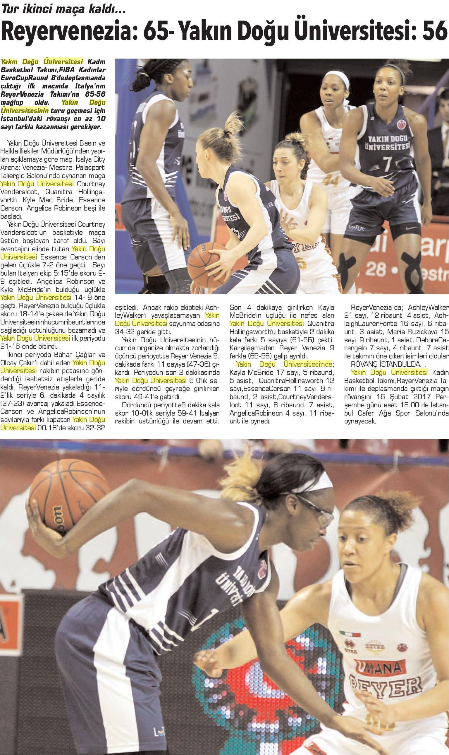 Reyer Venezia: 65 – Yakın Doğu Üniversitesi: 56 -Detay Kıbrıs