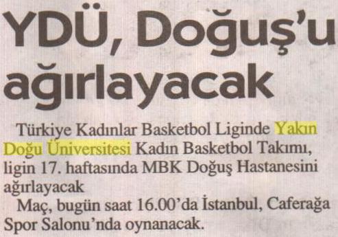 YDÜ, Doğuş’u Ağırlayacak-Kıbrıs Gazetesi