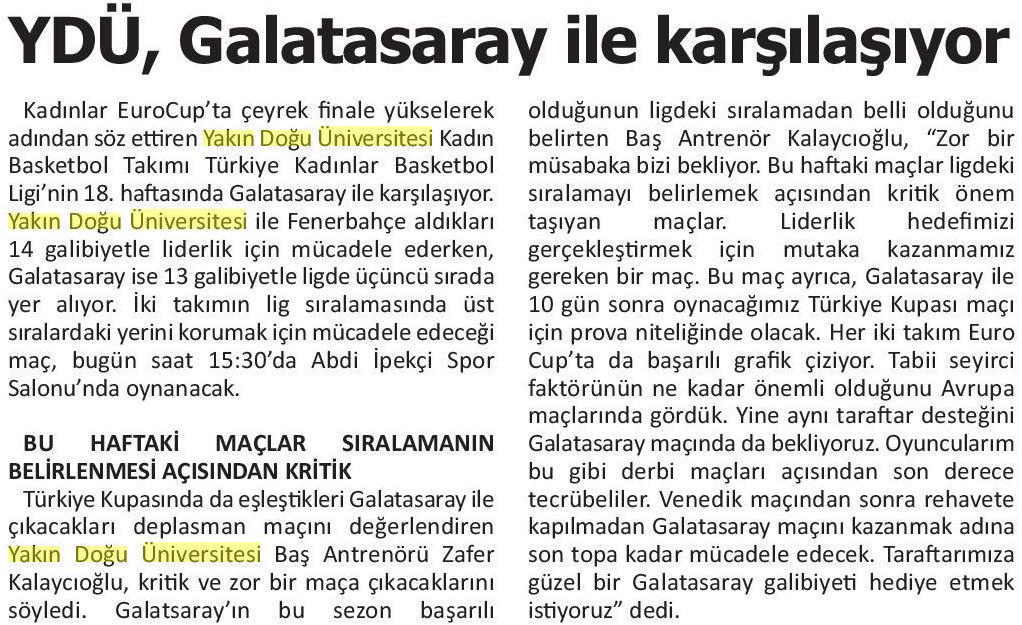 YDÜ, Galatasaray İle Karşılaşıyor-Halkın Sesi (Kıbrıs)