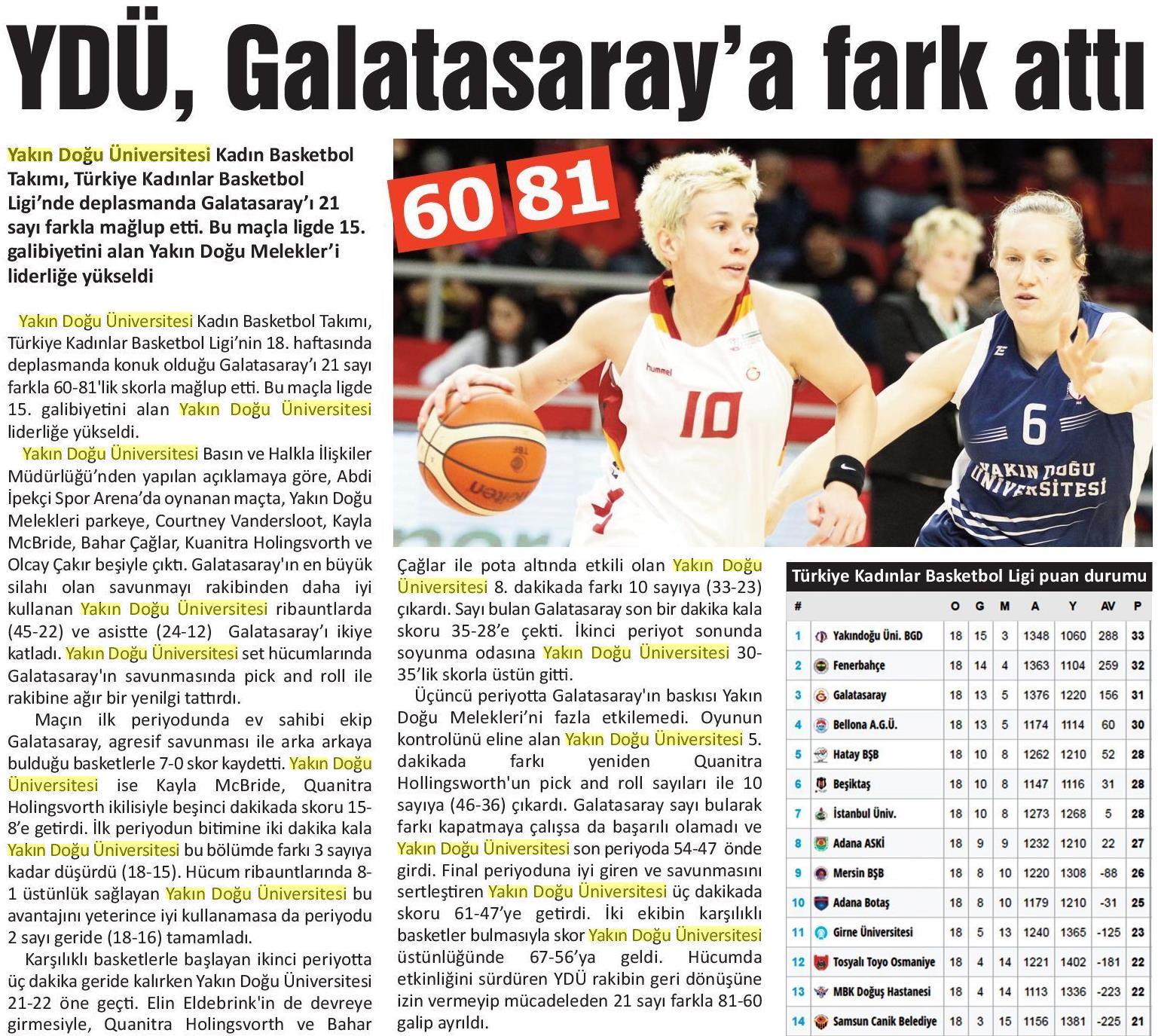 YDÜ Galatasaray’a Fark Attı-Halkın Sesi (Kıbrıs)