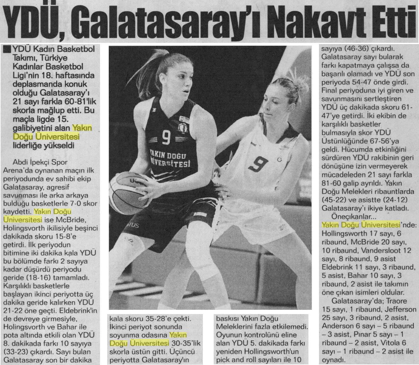 YDÜ Galatasaray’ı Nakavt Etti-Vatan Gazetesi (Kıbrıs)