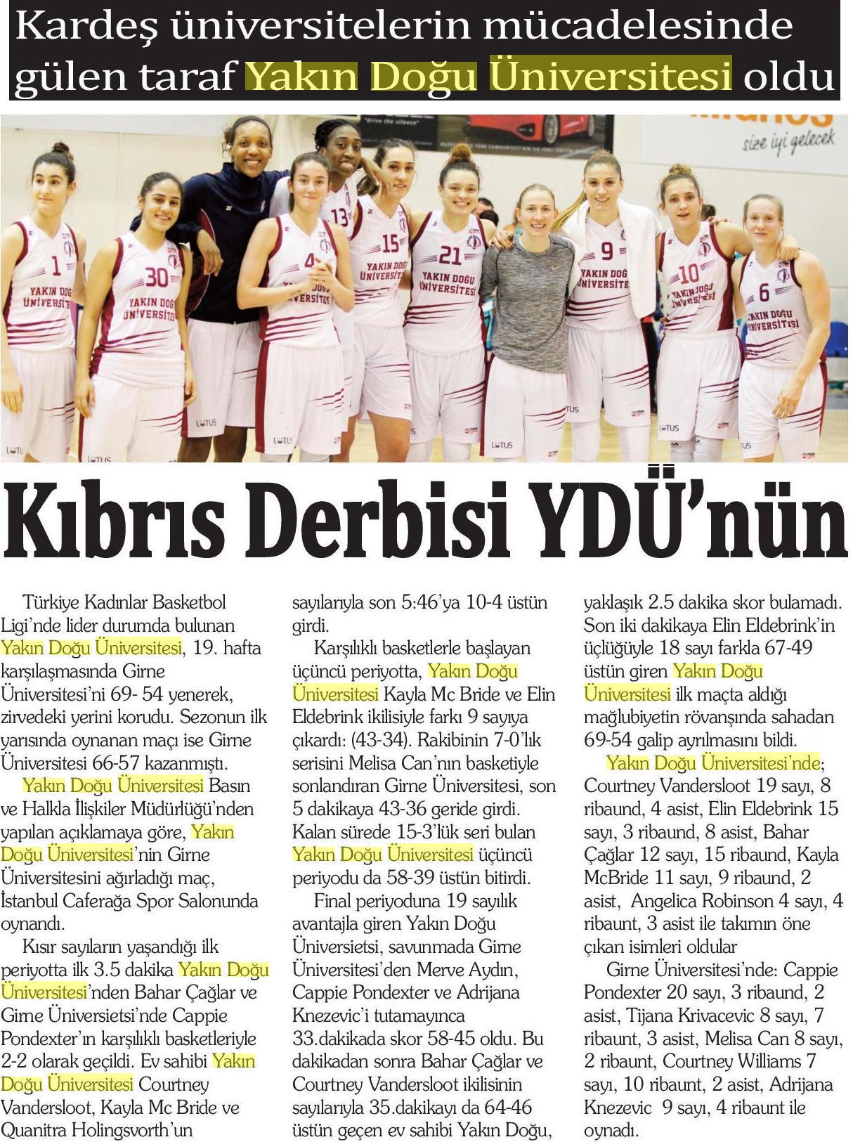 Kıbrıs Derbisi YDÜ’nün-Star Kıbrıs