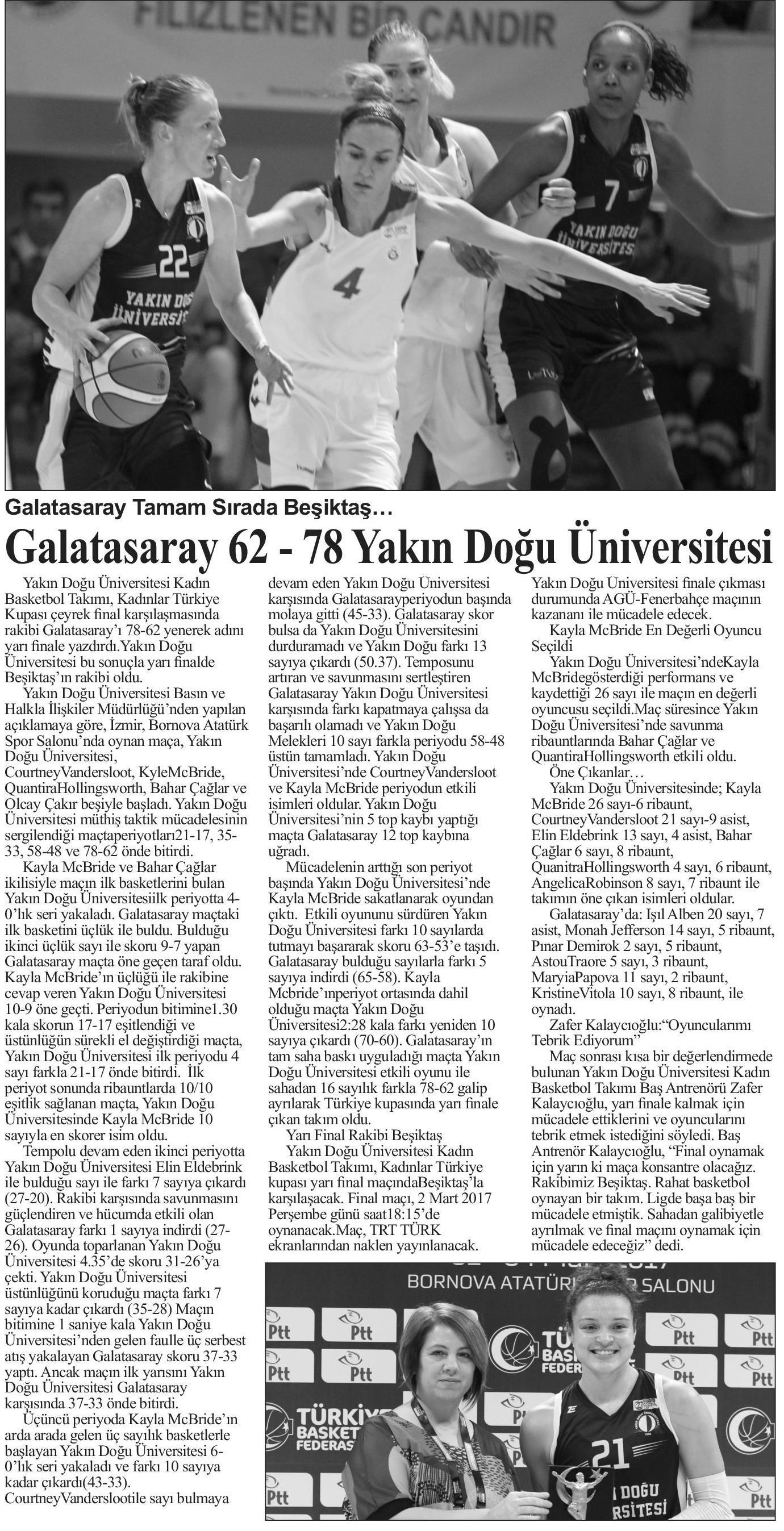 Galatasaray 62 – 78 Yakın Doğu Üniversitesi-Güneş (Kıbrıs)