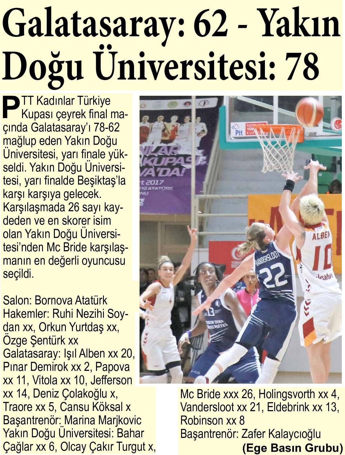 Galatasaray: 62 – Yakın Doğu Üniversitesi: 78 -Yeni Vizyon