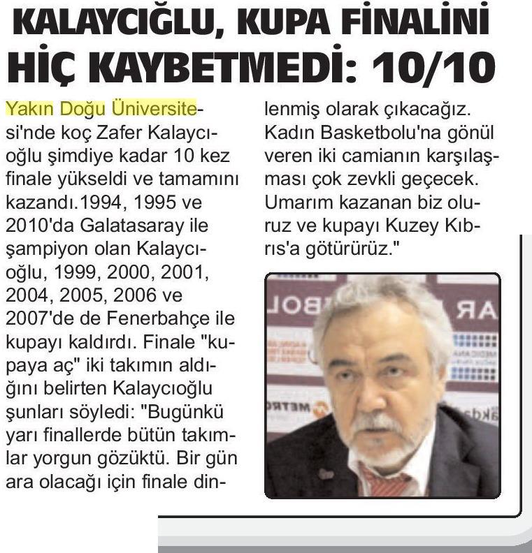 KALAYCIOĞLU, Kupa Finalini Hiç Kaybetmedi: 10/10-Kayseri Yeni Haber