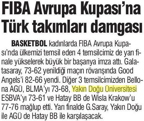 FIBA Avrupa Kupası’na Türk Takımları Damgası-Türkiye de Yeni Çağ